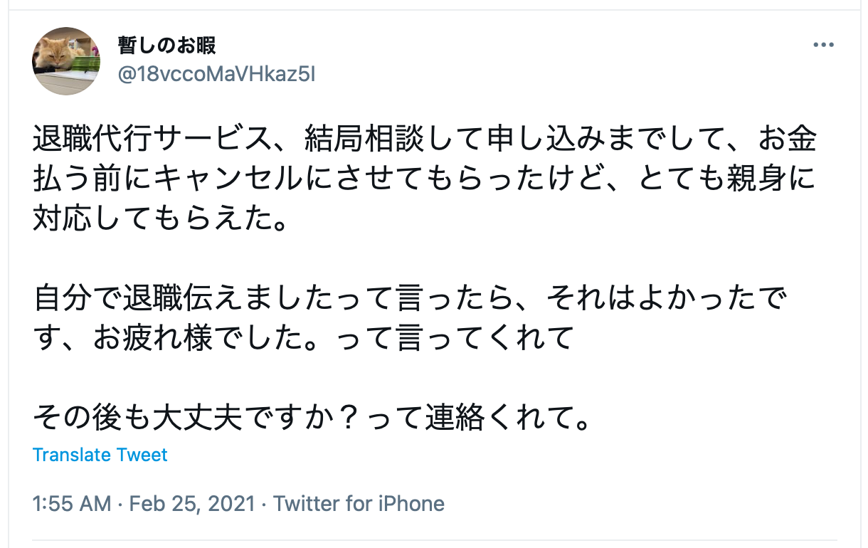 悪質でない良い業者2「退職できた」