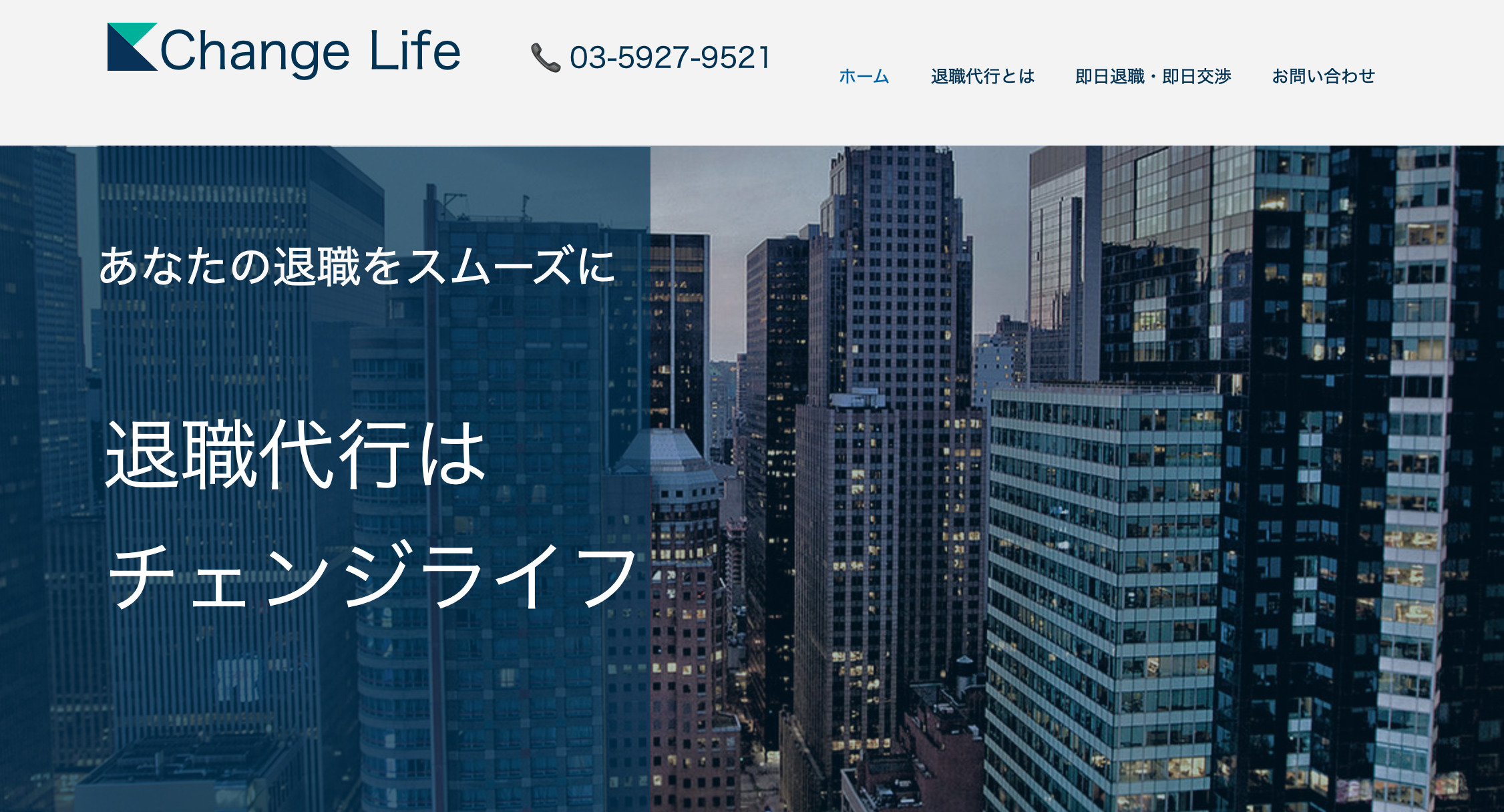 「Change Life(チェンジライフ)」は株式会社リーガルエースが運営する民間の退職代行業者です。