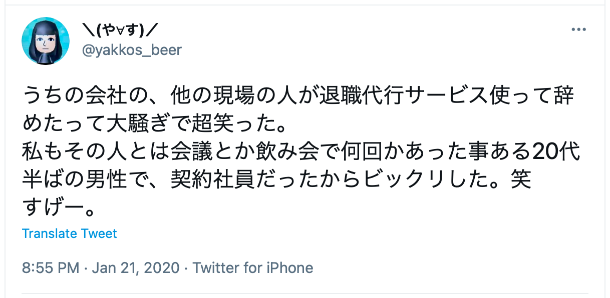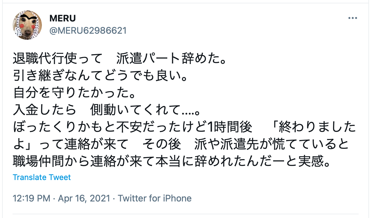 「退職代行使って派遣パート辞めた」「契約社員だった奴が退職代行で退職したわ」との声がありますね。