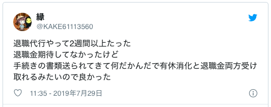 - 退職代行のその後4「有給消化と退職金両方受け取れた」